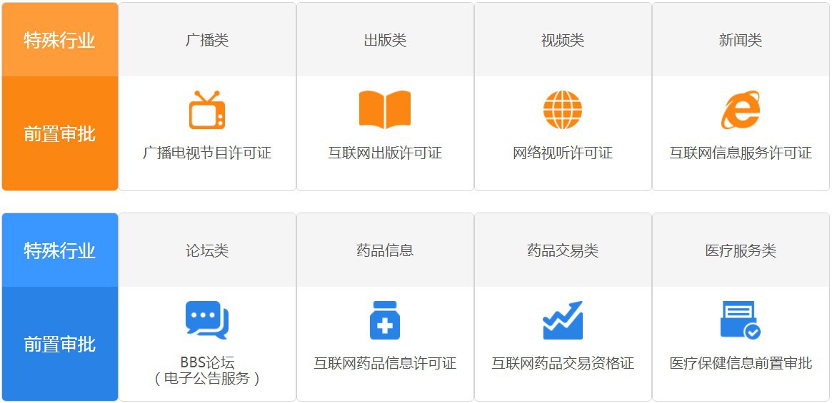 注意所从事行业,如果网站中含有前置审批(特殊行业)内容,则必须首先通过行业前置审批后,才可以申请ICP许可证。